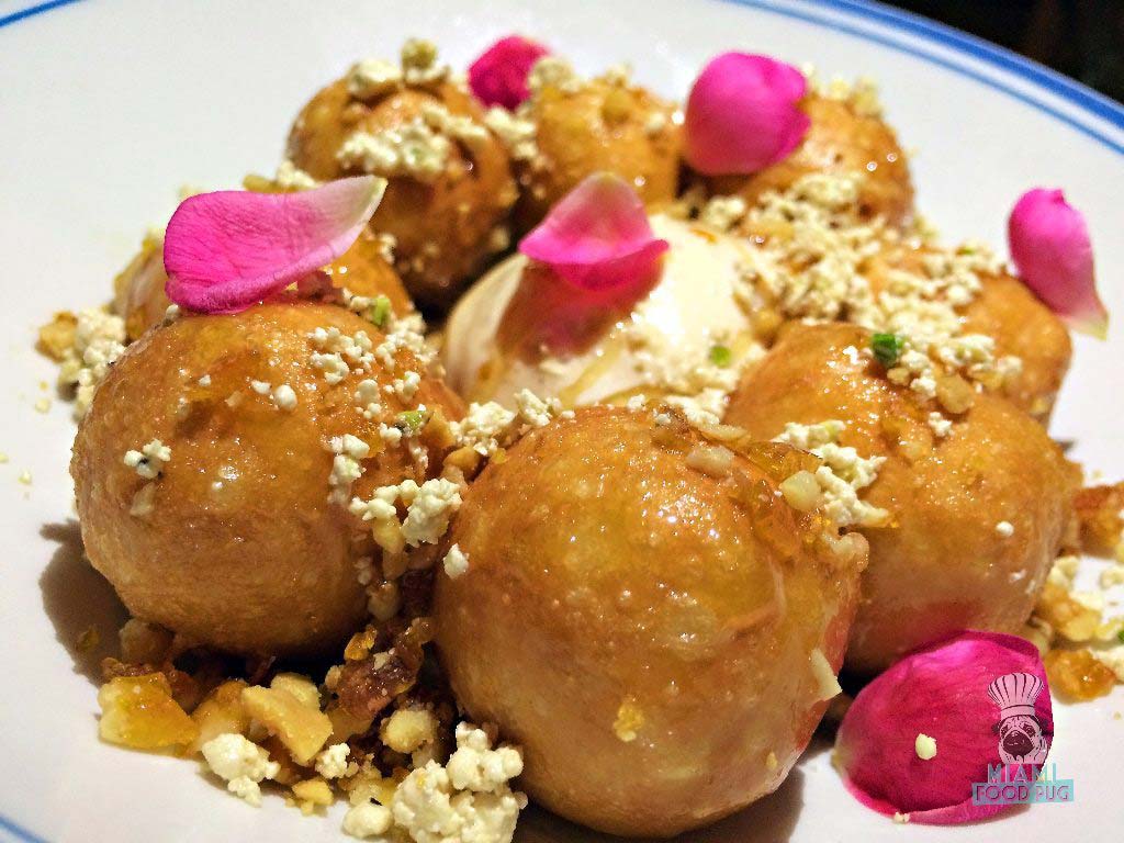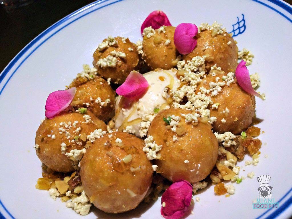 To cap the night, we each got our own desserts: the Pizzelle Baklava (ice cream, salted caramel and couscous praline) and the Loukoumades. The Pizzelle Baklava is your Eastern Mediterranean version of an ice cream sandwich. We couldn’t get enough of that crispy praline.