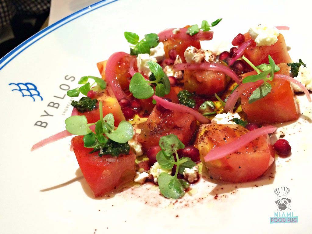 Speaking of delicious surprises: When we read Vine-Ripened Tomato Salad on the menu, we expected your typical salad. Nope, Byblos clearly has its own delectable definition; Webster needs to update his dictionary with this reinvention that includes pomegranate, Persian feta and pickled red onion. It was divine; the tomatoes were sweet and had the right amount of firmness — picked at the height of ripeness. The firm yet smooth feel of the tomatoes, along with the crumbly saltiness of the feta cheese and the crunch of the pomegranate seeds touched on all the different textures.