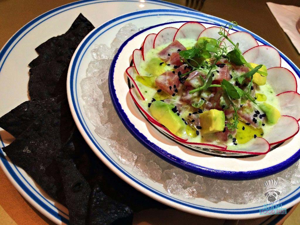 On the other side of the flavor spectrum was the tuna ceviche, whose acidity provided a nice counterbalance to the dumplings. Considering there’s a Peruvian place on every corner of Miami, we’re getting kinda tired of traditional ceviche. But this one was different — and welcome.