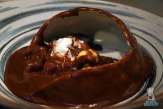 The more accessible — and decadent — dessert is the chocolate dome. Hot white chocolate is poured onto the sphere, which in turn melts and creates a gooey, memorable mix of flavors, which includes some scrumptious sweet potato custard. If you’ve been to Toro Toro at the Intercontinental, it’s like the Bomba dessert (but way better).