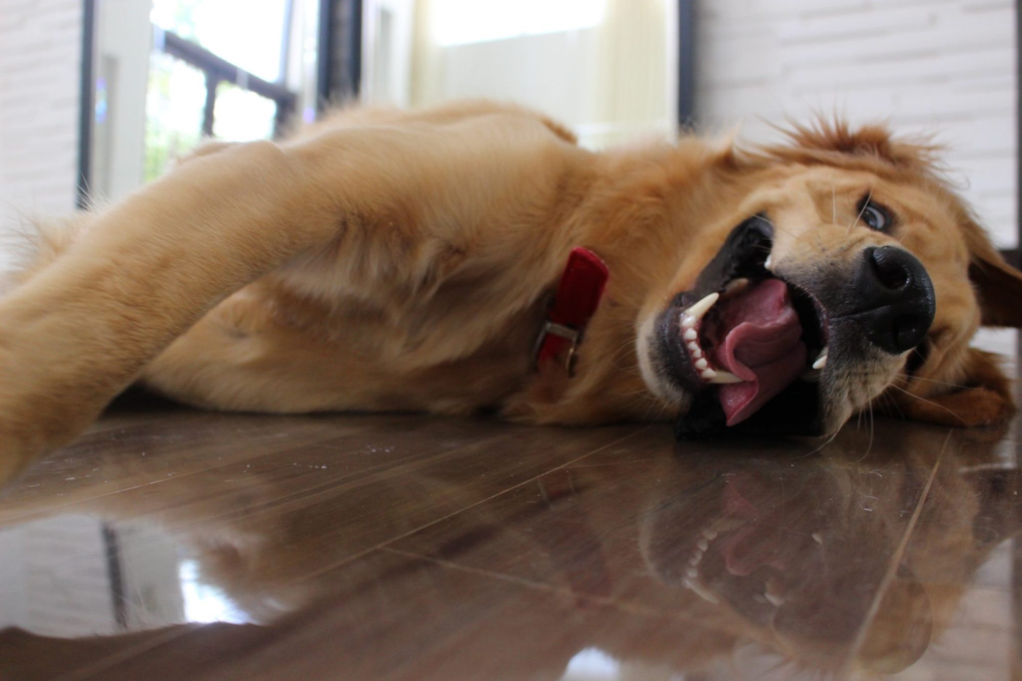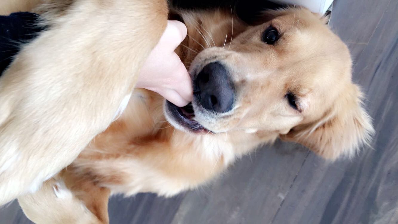 I was walking to Tropical Chinese — I was lost obviously — and I passed by this puppy store with four golden retrievers in the window. There was one that was bigger than the rest, stumbling over the others and trying to get out of the cage. He was stepping on their heads and falling over, but he kept getting back up and continued stepping on top of all of his brothers and sisters. Needless to say, I never made it to Tropical Chinese, but I did make it to Pet Supermarket with the cutest little clumsy furball that ever lived.