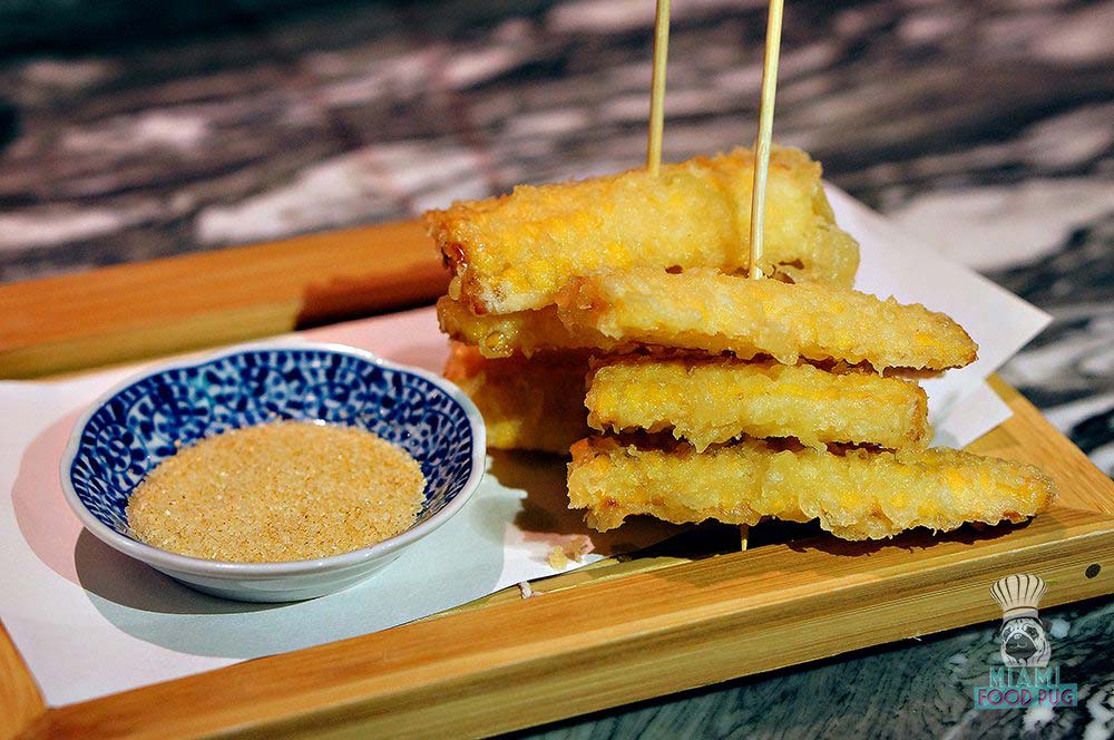 Take your time perusing the menu at Azabu. It’s lengthy, and you can expect hot and cold items, robata offerings, maki and much more. Don’t worry if you can’t make up your mind — the stellar service has your back. That’s how we discovered delicious bites like the Hamachi Yuzu (daikon and cucumber wrapped with hamachi) and Tomorokoshi Tempura (crispy corn fritters), which burst with flavor.