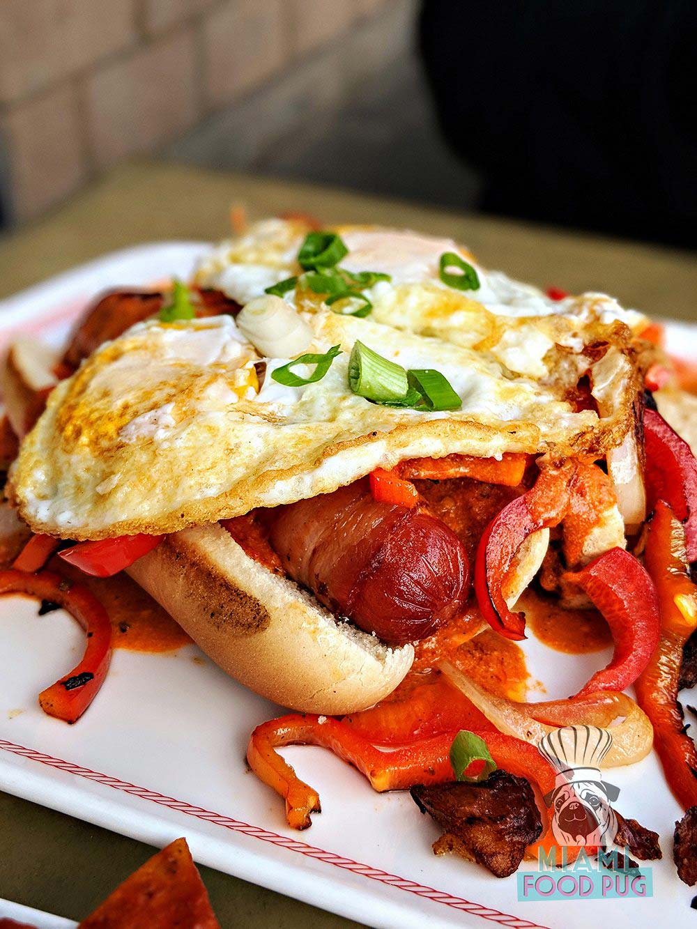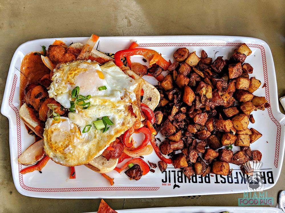 Everything is humongous, so you’ll probably want to order just one plate for two people. If you have the room, though, we suggest individual dishes since it all sounds good. But seriously, get those breakfast hot dogs.