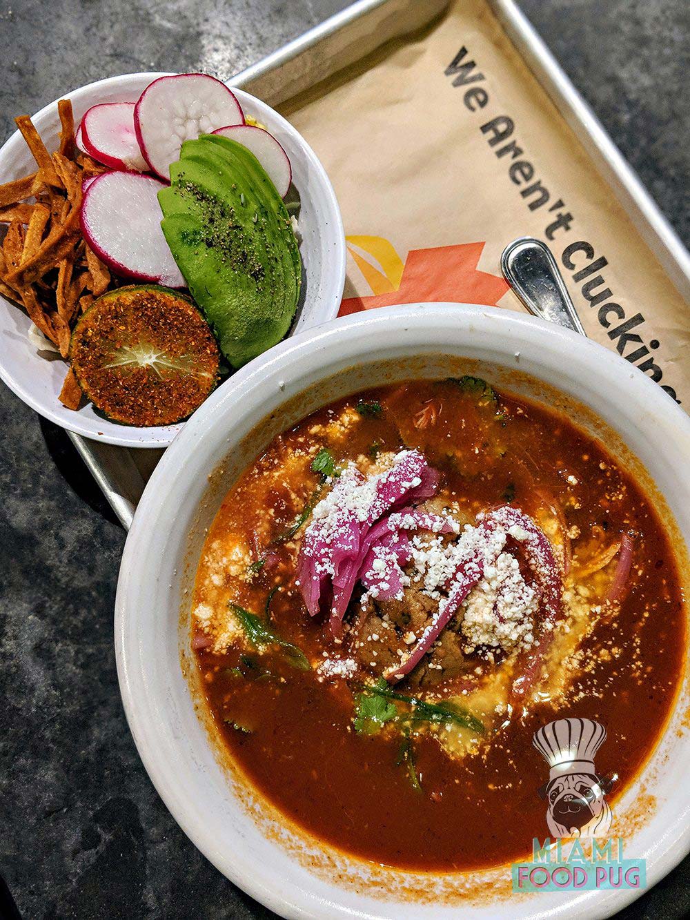You can’t go a block without running into a restaurant or five in Little Italy. After stuffing our faces at a few nearby spots, we came across Crack Shack and wished we had a second stomach. There was no way we were leaving sans some of Chef Richard Blais’s cuisine, so we squeezed in what seemed like one of the lighter items on the menu: a Matzo Ball Pozole.
