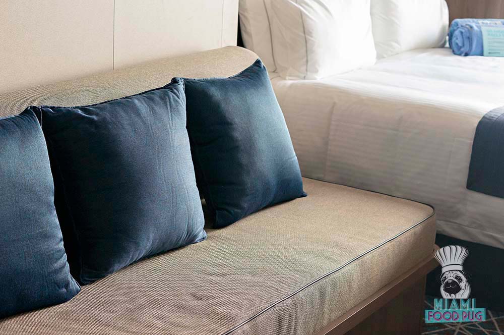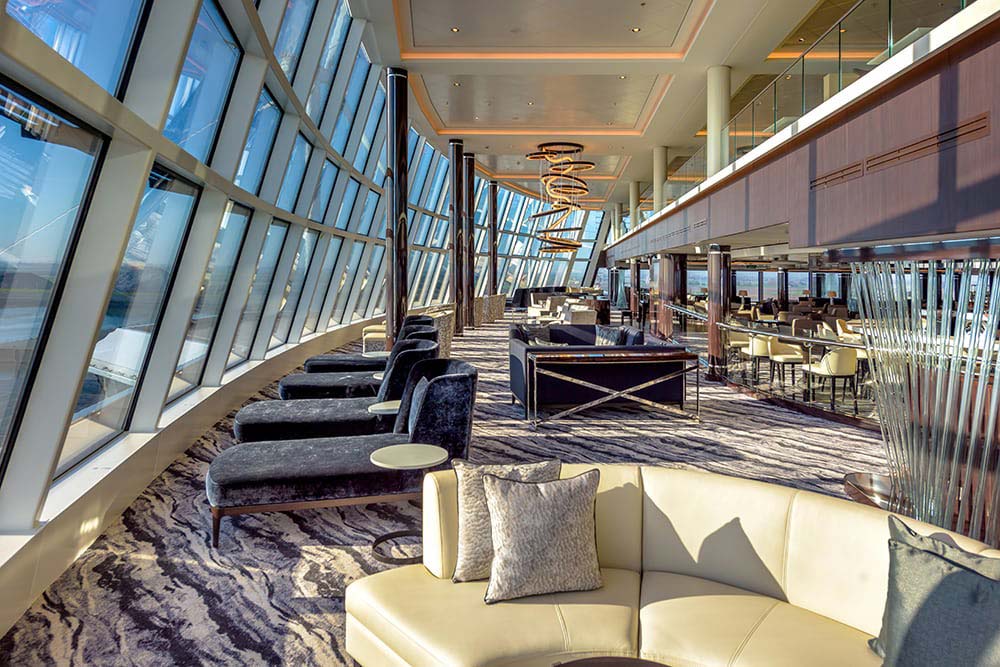 During our media preview, we grabbed a seat at Teppanyaki and Ocean Blue. The former focuses on Asian cuisine, and it’s reminiscent of Benihana. Our chef cooked tableside and cracked jokes while pulling off some amazing culinary tricks. It was not only fun, but it also gave us an opportunity to meet fellow cruisegoers since you’re all sitting together. Pick your protein — chicken, shrimp, etc. — and then sit back and watch the show. At Ocean Blue, seafood is the star as is the view. While you can dine inside and savor the restaurant’s array of fish options, we suggest you grab a seat outside at the waterfront if the weather is nice.