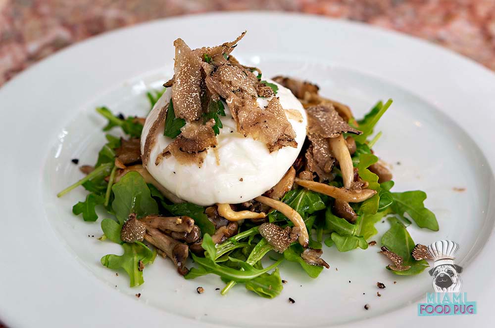 We happened to visit during the Black Truffle Festival, and lucky for us, the blackboard specials put the flavorful fungi to work. Salumeria 104’s Black Truffle Burratina with arugula and a Truffle Cream Cheese Bruschetta with cotto ham immediately lit up our palates: The second each one hit our mouths, we could think of nothing else except ordering more.