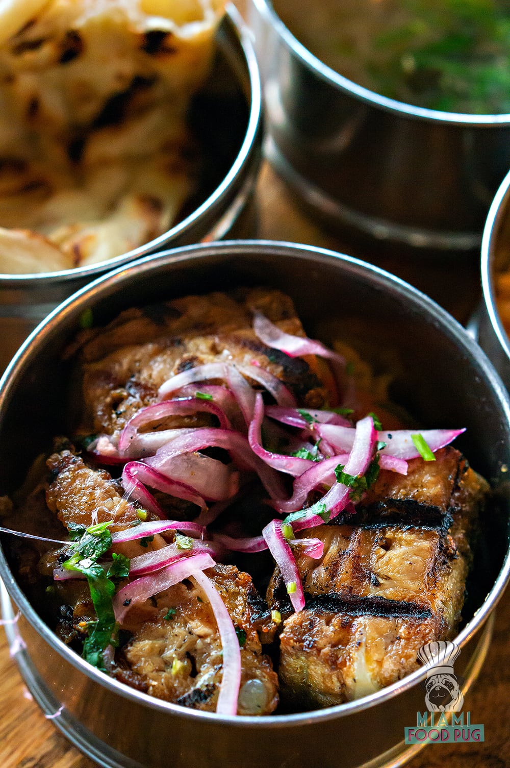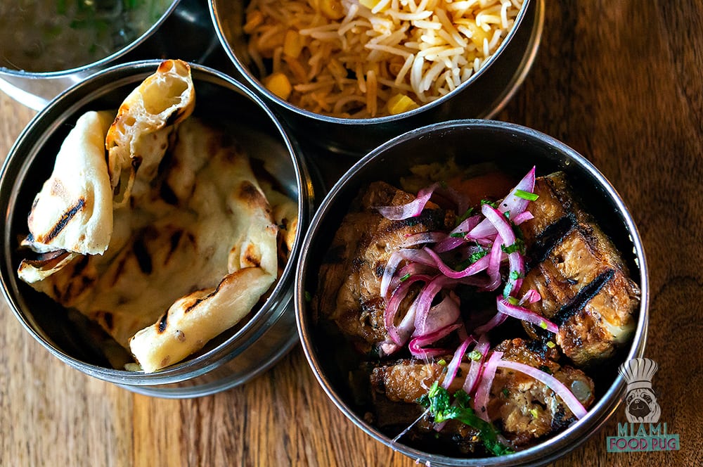 Ghee Indian Kitchen has been on our “must-visit” list for a while now, but for whatever reason(s), it took us almost a year to eat there. We finally made it out to the Dadeland outpost for lunch, and it lives up the hype. Ghee offers a tiffin lunch, which consists of three to four courses that come in stainless steel containers. The menu changes daily but there’s always a soup or salad course, naan, rice and a vegetarian or non-vegetarian option. During our Wednesday visit, we were treated to grilled ribs and an additional course of chicken tikka masala — we’ve never encountered food so fragrant and packed with flavor. Make a reservation yesterday; we can’t wait to go back for dinner.