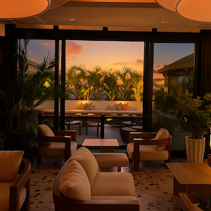 The outdoor terrace offers an intimate and transportive escape, surrounded by swaying palms, soft lantern light, and the warm glow of candles. It’s a place to unwind over fine wines, hand-rolled cigars, curated bites, and effortless conversation beneath the palms and stars. Inside, the energy builds in a living room style social lounge designed for live music, dancing, and signature cocktails. Every night feels spontaneous, vibrant, and alive, creating an atmosphere that invites connection.