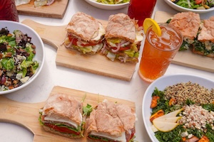 Mediterranean Bowl – Arugula, artichokes, cucumber, tomatoes, red onion, walnuts, Greek geta, Kalamata olives tossed in champagne vinaigrette ($17)