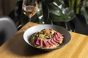The menu is helmed by Executive Chef Greg McCallum and the Test Kitchen team of culinary experts. “We make modern North American food that is inspired by the places and cuisines we love,” says Executive Chef Greg McCallum. “This menu celebrates Miami’s best ingredients with coastal classics and fresh favorites like Sushi, Ceviche and Wagyu Beef Carpaccio, alongside salads, bowls, pastas and steaks. Of course, save room for desserts like Key Lime Pie and London Fog Crème Brûlée.”